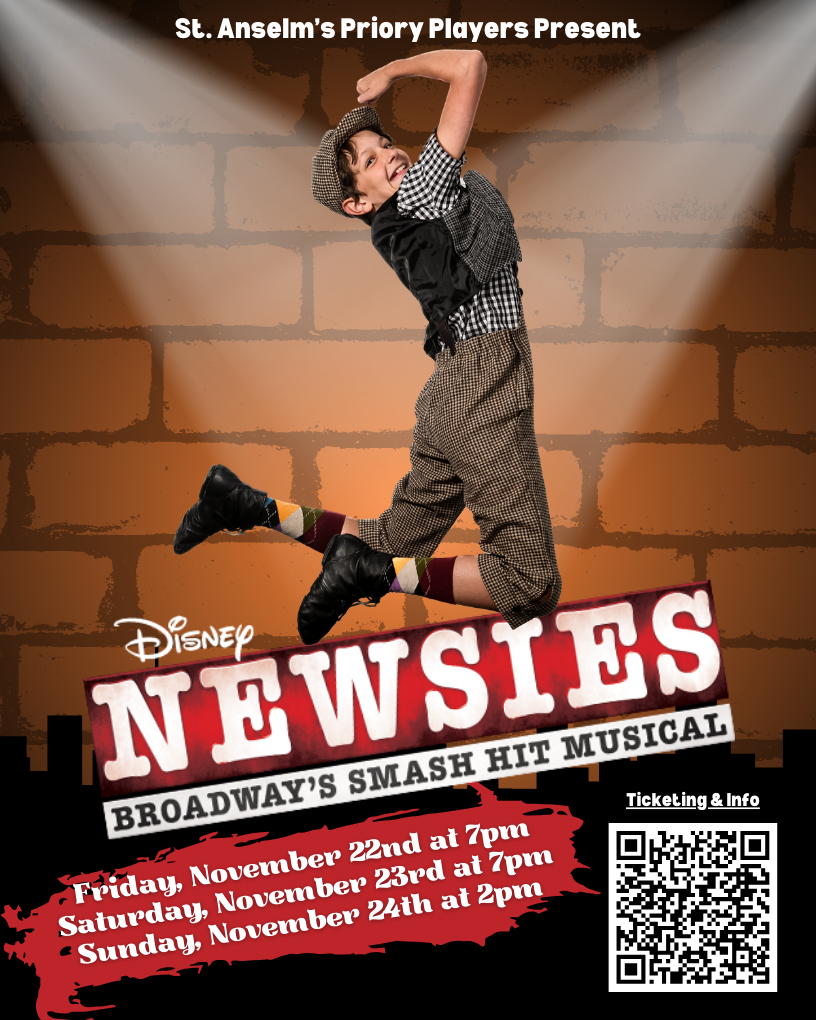 After Evan’s theatrical debut as an Oompa Loompa in the school production of Willy Wonka in Fall 2023, he continued his stage career as one of the narrators in the spring production of James and the Giant Peach. He joined the cast for the school production of Newsies! this fall, but this time with some reluctance. The show has a ton of dancing and choreography, which was a new challenge for Evan (and pretty much the whole cast).