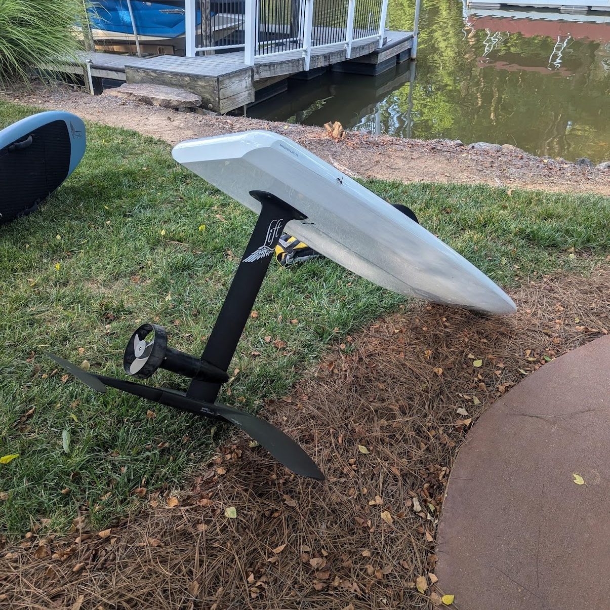 At the beginning of July, I drove Sylvie and a few friends to UNC Chapel Hill for a four-day field hockey camp. While they were brushing up on their skills, I spent a few days by myself on Lake Norman, near Charlotte, where I took an eFoil lesson. What’s an eFoil? Picture a surfboard with a hydrofoil mast descending from the rear. Imagine the surfboard is just a giant battery, and at the bottom of the mast is an electric motor. Now picture that motor propelling me forward and the hydrofoil lifting the whole board 2 or 3 feet out of the water. Now picture me falling. Again. Again. Again. Again. Again. Again. That’s eFoiling in a nutshell.